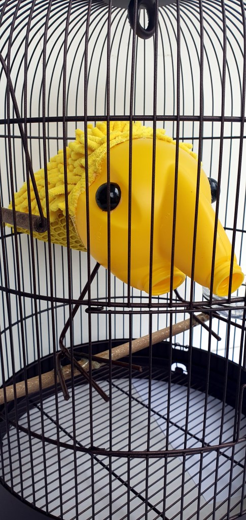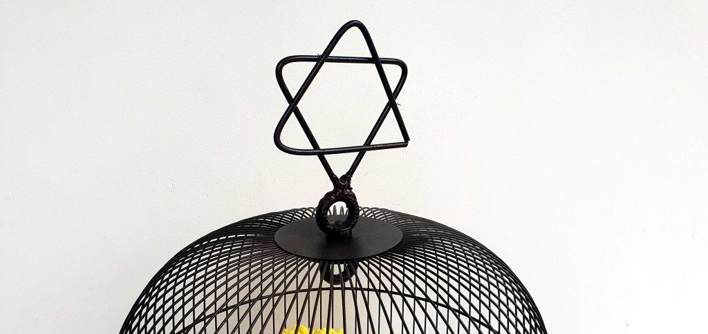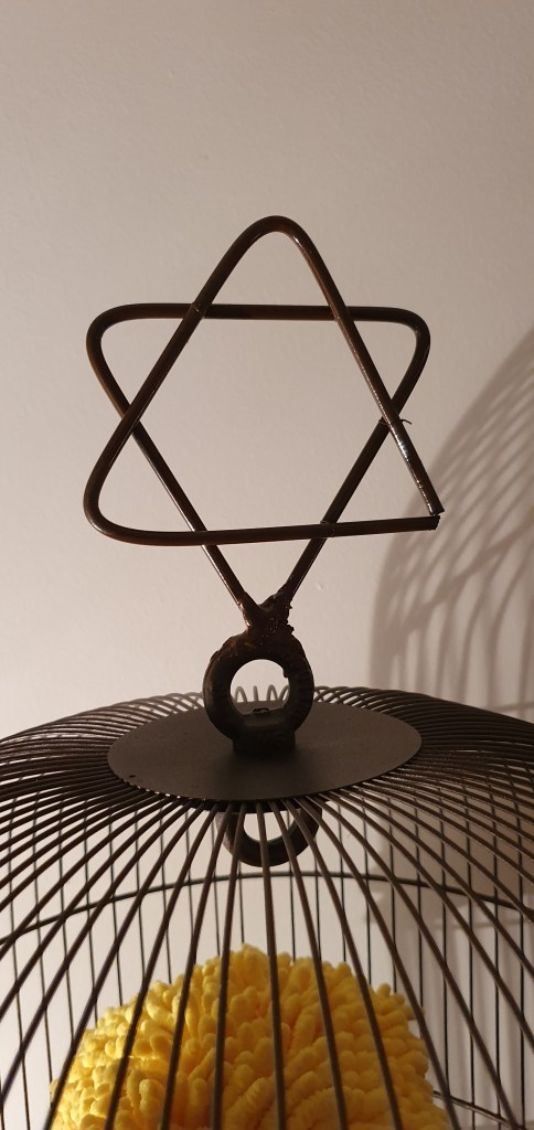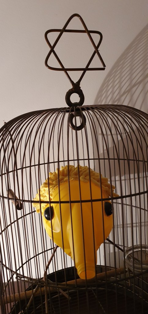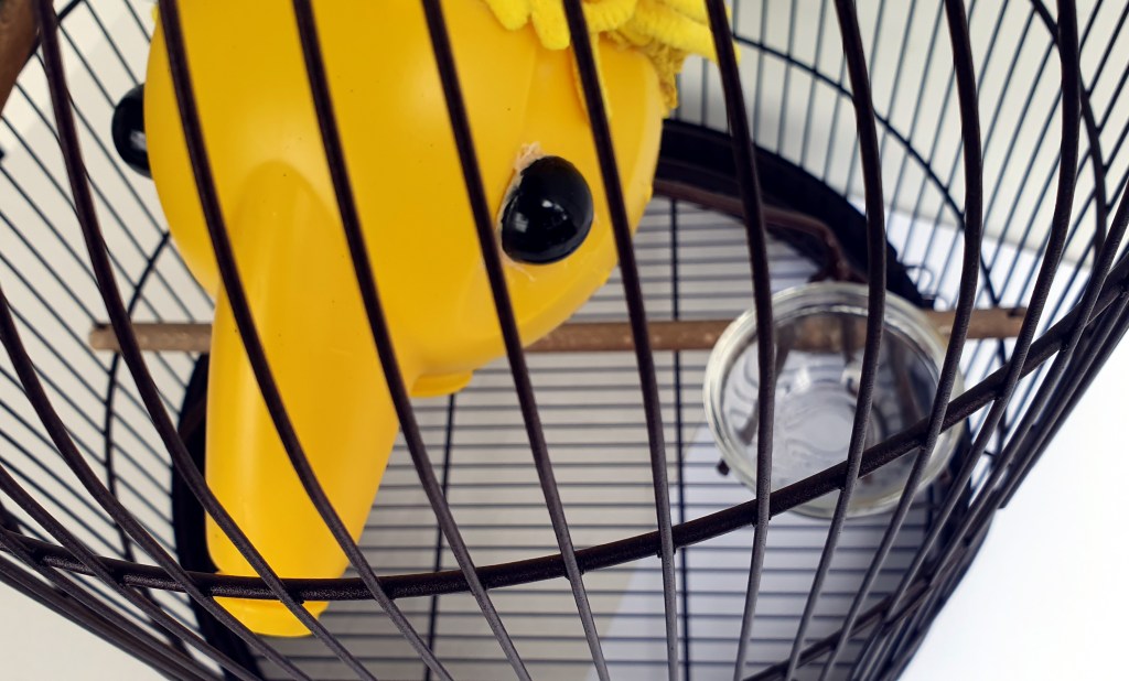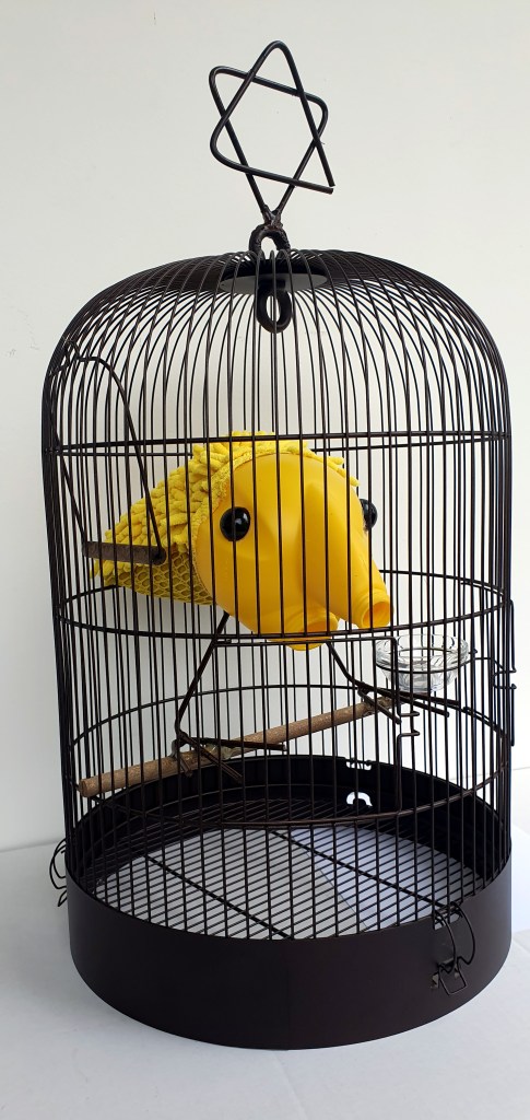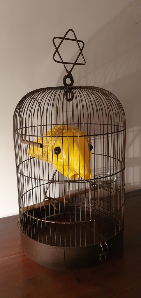 Can, Cleaning glove, Bird Cage. h : 67 cm