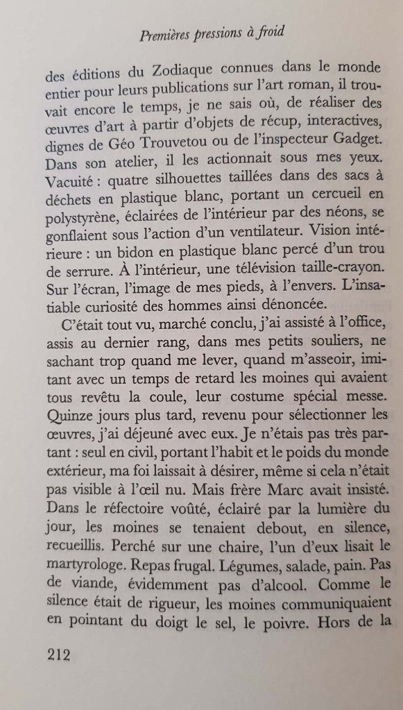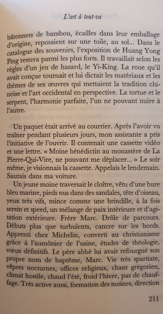 On the advice of his twin artist he sent a VHS of his creations to 7 galleries in Paris, one answered him. Cyrille Putman an Almine Rech came to the monastery. It was snowing.